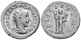 Gordian III. Antoninianus. 243-244 AD. Rome. (Ric-IV 140). (Rsc-71). Anv.: IMP GORDIANVS PIVS FEL AVG. adiate, draped and cuirassed bust to right. Rev.: FELICIT TEMP. FFelicitas standing to left, holding caduceus and cornucopiae. Ag. 4,93 g. Choice VF. Est...50,00.