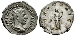 Philip I. Antoninianus. 244-247 AD. Rome. (Ric-28c). (Rsc-25). Anv.: IMP M IVL PHILIPPVS AVG. Radiate, draped and cuirassed bust to right. Rev.: ANNONA AVGG. Annona standing to left, holding corn-ears over modius at feet and cornucopiae. Ag. 4,25 g. Soft tone. Almost XF. Est...45,00.