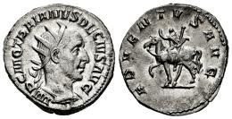 Trajan Decius. Antoninianus. 249-251 AD. Rome. (Ric-IV 11b). (Rsc-4). Anv.: IMP C M Q TRAIANVS DECIVS AVG, radiate, draped and cuirassed bust to right. Rev.: ADVENTVS AVG, emperor on horseback to left, holding sceptre. Ag. 4,40 g. A good sample. Traces of luster. XF. Est...80,00.