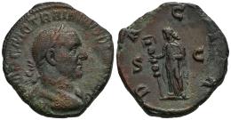 Trajan Decius. Sestertius. 249-251 AD. Rome. (Ric-IV 3 114a). (C-35). Anv.: IMP C M Q TRAIANVS DECIVS AVG, laureate and cuirassed bust to right. Rev.: DACIA FELIX, Dacia standing to left, holding standard; S C across fields. Ae. 17,53 g. Choice F/VF. Est...70,00.