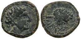 Olontigi. Half unit. 50-20 BC. Aznalcázar (Sevilla). (Abh-1878). (MIB-24/02). (Acip-854). Anv.: Male head right. Rev.: Pine cone right, punic legend below. Ae. 6,51 g. Rare. Choice VF/VF. Est...150,00.