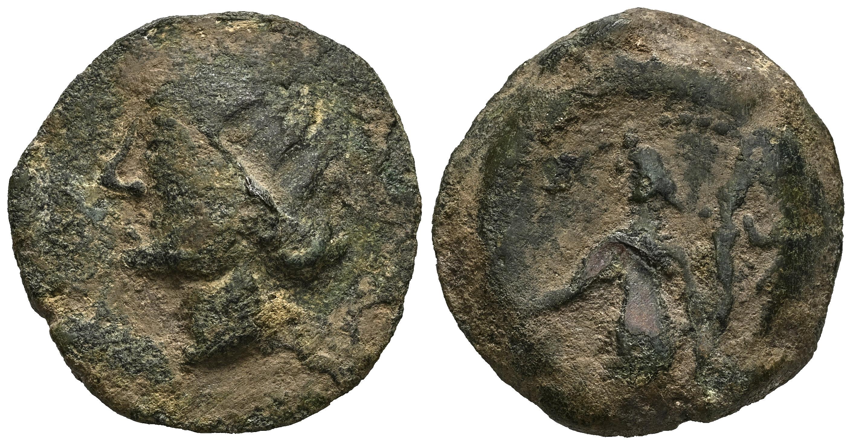 Corduba. Cuadrante. 44-55 a.C. Córdoba. (Abh-Unlisted). (MIB-174/01). (Acip-2492). Anv.: Female head to left; in front, legend (L. FVRIVS). Rev.: Eros standing with cornucopiae in his left hand; behind (AL) NE. Ae. 11,11 g. A few specimens known. Very rare. F. Est...100,00.
