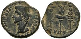Colonia Patricia. Augustus period. Dupondius. 27 BC - 14 AD. Córdoba. (Abh-1988). (Acip-3356). Anv.: PERMISS(V. CAES)ARIS. AVGVSTI. around head of Augustus left. Rev.: Eagle between military ensigns, (COLO)NIA. PATRI(CIA) around. Ae. 18,47 g. Slight minting defect. Almost VF. Est...65,00.