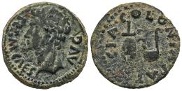 Colonia Patricia. Augustus period. Half unit. 27 BC - 14 AD. Córdoba. (Abh-1992). (Acip-3358). Anv.: PERM. CAES. AVG. around head of Augustus left. Rev.: Apex and simpulum, COLONIA. PATRICIA around. Ae. 5,92 g. A good sample for this type. Choice VF. Est...70,00.