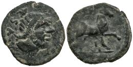 Sacili. Half unit. 120-50 BC. Pedro Abad (Córdoba). (Abh-2022). (MIB-27/4b). Anv.: Head right, SACILI behind. Rev.: Horse walking right, L below. Ae. 8,78 g. VF. Est...120,00.