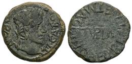Turiaso. Augustus period. Half unit. 27 BC - 14 AD. Tarazona (Zaragoza). (Abh-2460). (Acip-3293). Anv.: TI. CAESAR. AVG. F. IMP. PONT. M. around laureate head of Tiberius right. Rev.: In the center, TVRIA, legend RECTO. ET. MACRINO. AED around. Ae. 6,34 g. Scarce. VF. Est...90,00.
