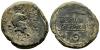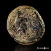 Turrirregina. Unit. 50 BC. (Abh-2464). (MIB-36/1). (Acip-958). Anv.: Helmeted male head right, vine stems around. Rev.: Iberian falcata and round shied, TVRIRIICINA and Libyan-Phoenician legend between them. Ae. 14,22 g. Rare. Choice VF. Est...500,00.