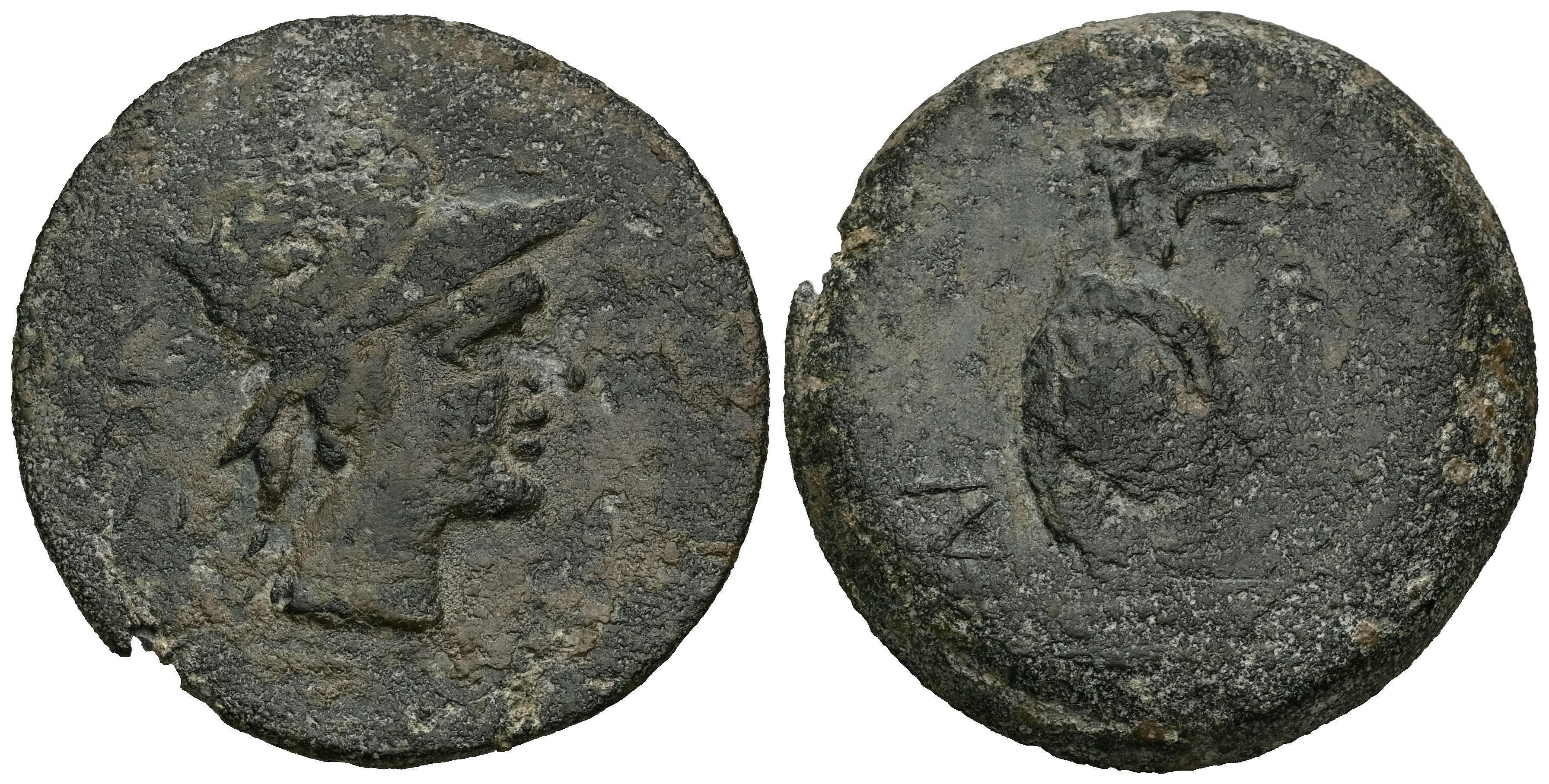 Ursone. Unit. 50 BC. Osuna (Sevilla). (Abh-2496). (MIB-204/07 ID 1590, Plate Coin). (Acip-2330). Anv.: Helmeted female head right, VRSO (NE?) behind. Rev.: Bear sitting right, monogram MA behind. Ae. 16,81 g. Very scarce. Ex Cayón (11/04/2002), lot 622. MIB 204/07 ID 1590, Plate Coin. Almost VF. Est...120,00.