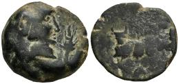 Vesci. Unit. 50 BC. South area of Extremadura. (Abh-2521). (MIB-23/4). (Acip-966). Anv.: Helmeted male head right, ear of corn before, (C. LIVIS) below. Rev.: Bull left, palm behind, (VESCI) below. Ae. 14,59 g. Rare. Almost VF/Choice F. Est...90,00.