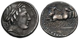 Anonymous. Denarius. 86 BC. Rome. (Ffc-85). (Craw-350/A2). (Cal-59). Anv.: Laureate head of Apolo Vejovis right, thunderbolt below. Rev.: Jupiter in quadriga right. Ag. 4,00 g. Toned. Choice VF. Est...90,00.