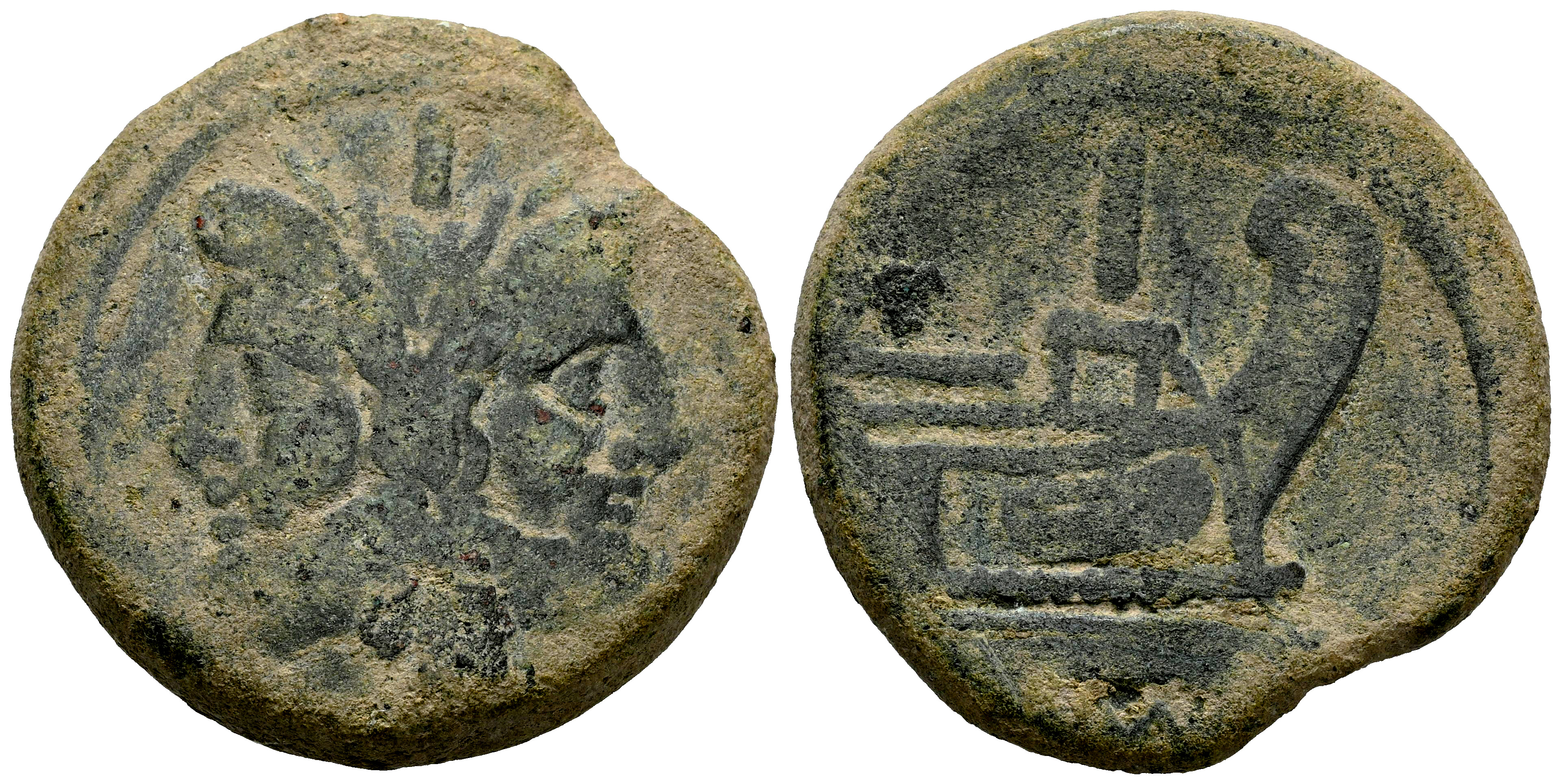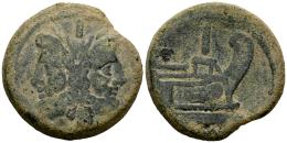 Anonymous. Unit. 211 BC. Rome. (Craw-56/2). (Sydenham-143). (BMCRR-Rome 217). Anv.: Laureate head of Janus; I (mark of value) above. Rev.: Prow of galley to right; I (mark of value) above, ROMA below. Ae. 30,37 g. Ex Tauler&Fau 9 (12/04/2018), lot 88. Almost VF. Est...80,00.