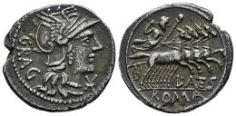 Antestius. L. Antestius Gragulus. Denarius. 136 BC. Rome. (Ffc-151). (Craw-238/1). (Cal-127). Anv.: Head of Roma right, X beneath chin. GRAG behind head. Rev.: Jupiter in quadriga right, L. ANTES, (ANTE interlace), below horses, ROMA in exergue. Ag. 3,81 g. Small planchet flaw on reverse. Planchet defect on edge. Patina. Choice VF. Est...100,00.