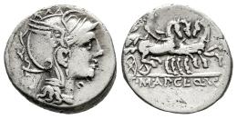 Claudia. Appius Claudius Pulcher. Denarius. 110-109 BC. Rome. (Ffc-564). (Craw-299/1a). (Cal-423). Anv.: Head of Roma right, square object behind. Rev.: Victory in triga right, AP. CL . T. MANL . Q. VR (MANL and VR interlace), in exergue. Ag. 3,76 g. banker's mark in obverse. Almost VF. Est...80,00.