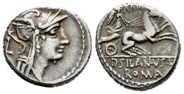 Junius. D. Junius Silanus L.f. Denarius. 91 BC. Rome. (Ffc-791). (Craw-337/3v). (Cal-871). Anv.: Head of Roma right, letter L behind. Rev.: Victoy in biga right, number XXVI? above, D. SILANVS. L./ ROMA in exergue. Ag. 3,87 g. Lightly toned. Ex Áureo & Calicó 219/2 (02/07/2009), lot 2128. VF. Est...100,00.