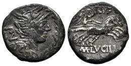 Lucilia. M. Lucilius Rufus. Denarius. 101 BC. Norte de Italia. (Ffc-821). (Craw-324/1). (Cal-909). Anv.: P.V., behind head of Roma right, within laurel-wreath. Rev.: RVF., above Victory in biga right, holding whip, M. LVCILI in exergue. Ag. 3,41 g. Almost VF. Est...50,00.