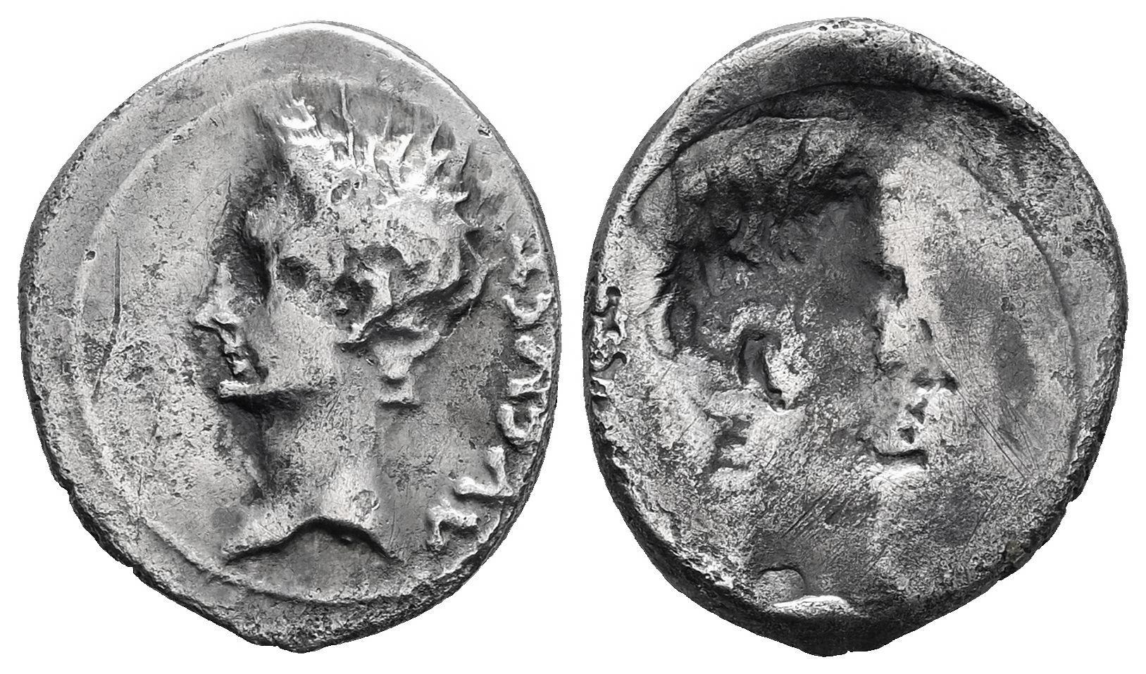 Augustus. P. Carisius. Brockage Quinarius. 25-23 BC. Emerita Augusta (Mérida). (Ric-1b). (Rsc-387). Anv.: AVGVST, bare head right. Rev.: Incuse of obverse. Ag. 1,81 g. Rare. Choice VF. Est...120,00.