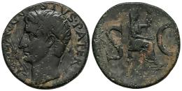 Divus Augustus. Unit. 15-16 AD. Rome. (Ric-I 72 (Tiberius)). (Bmcre-151 (Tiberius)). (C-244). Anv.: DIVVS AVGVSTVS PATER, radiate head to left; star above, thunderbolt before. Rev.: Livia?, veiled and draped, seated to right, holding patera and sceptre; large S-C flanking. Ae. 10,63 g. Green patina. Scratch on reverse. Almost VF. Est...120,00.