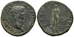 Claudius. Sestertius. 50-54 AD. Rome. (Ric-I 115). (Bmcre-192/5). Anv.: TI CLAVDIVS CAESAR AVG P M TR P IMP P P, laureate head to right. Rev.: SPES AVGVSTA, Spes, draped, standing to left, holding flower and raising skirt; SC in exergue. Ae. 27,64 g. VF. Est...200,00.