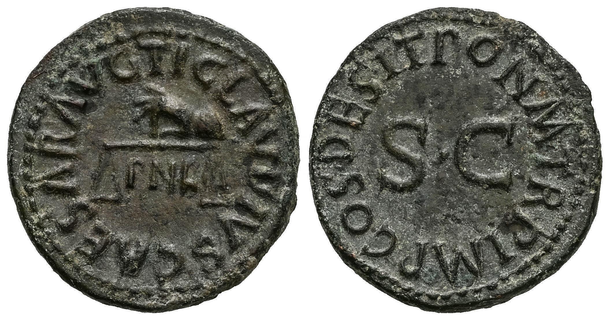 Claudius. Cuadrante. 41 AD. Rome. (Ric-I 85). (Bmcre-174). (C-71). Anv.: TI CLAVDIVS CAESAR AVG, hand to left holding pair of scales; PNR below. Rev.: PON M TR P IMP COS DES IT around SC. Ae. 2,95 g. Ex Tauler & Fau 149 (01/10/2024), lot 2544. Almost XF. Est...120,00.