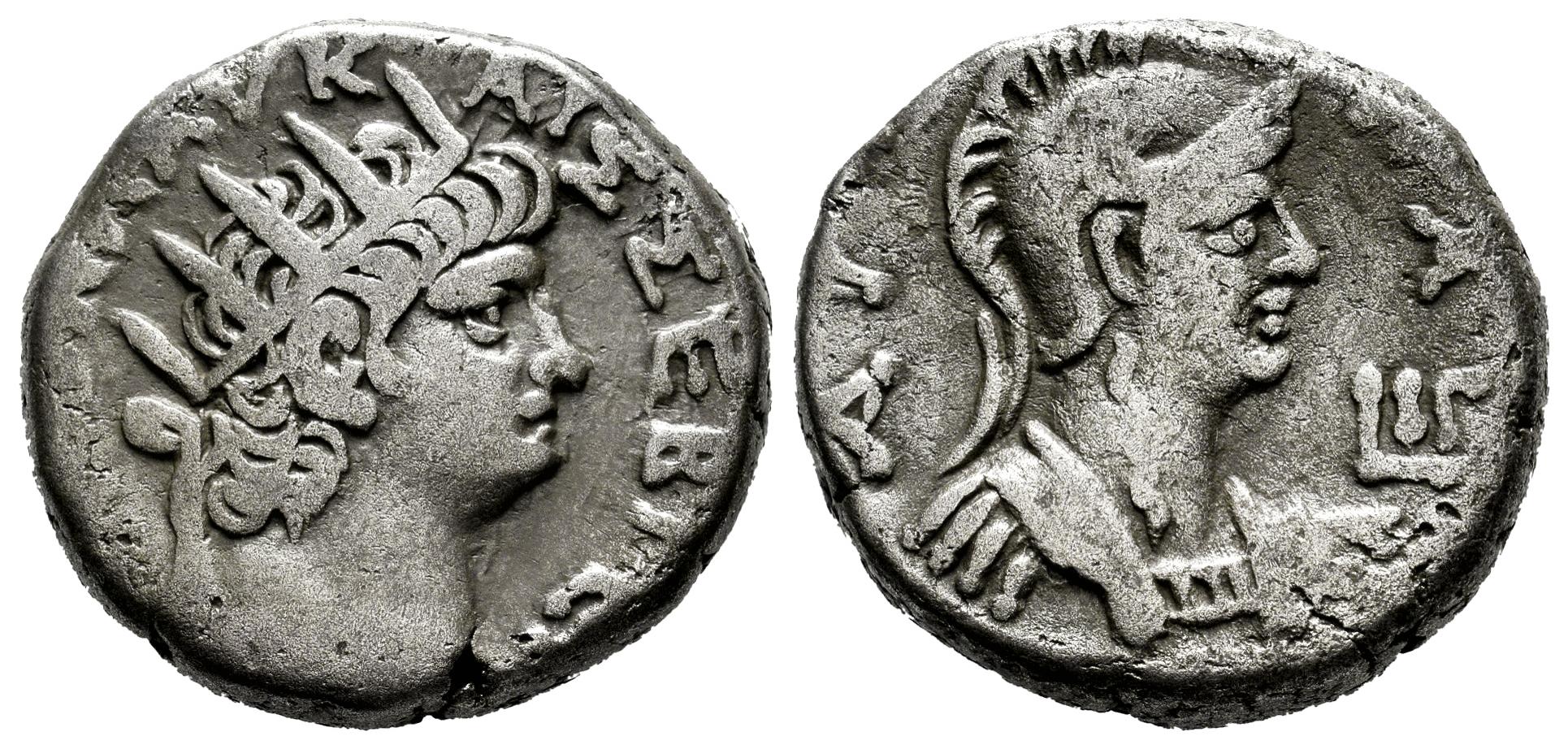 Nero. Tetradrachm. RY 13 = 66/7 AD. Alexandria. Egypt. (RPC-I 5293). (Köln-183). (Emmett-131). Anv.: (NЄPΩ) KΛAV KAIΣ ΣЄB ΓЄP, radiate head right. Rev.: AY(TOKP)A, helmeted and cuirassed bust of Roma right, LIΓ (date) in right field. Bi. 13,05 g. VF. Est...150,00.