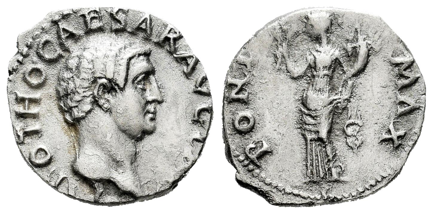 Otho. Denarius. 69 d.C. Rome. (Ric-19). (Bmcre-6). (Rsc-9). Anv.: IMP OTHO CAESAR AVG TR P, bare head right. Rev.: PONT MAX, Aequitas, draped, standing left, holding scales in right hand and sceptre in left. Ag. 3,19 g. Delicate cleaning. Rare. Almost XF/Choice VF. Est...1200,00.