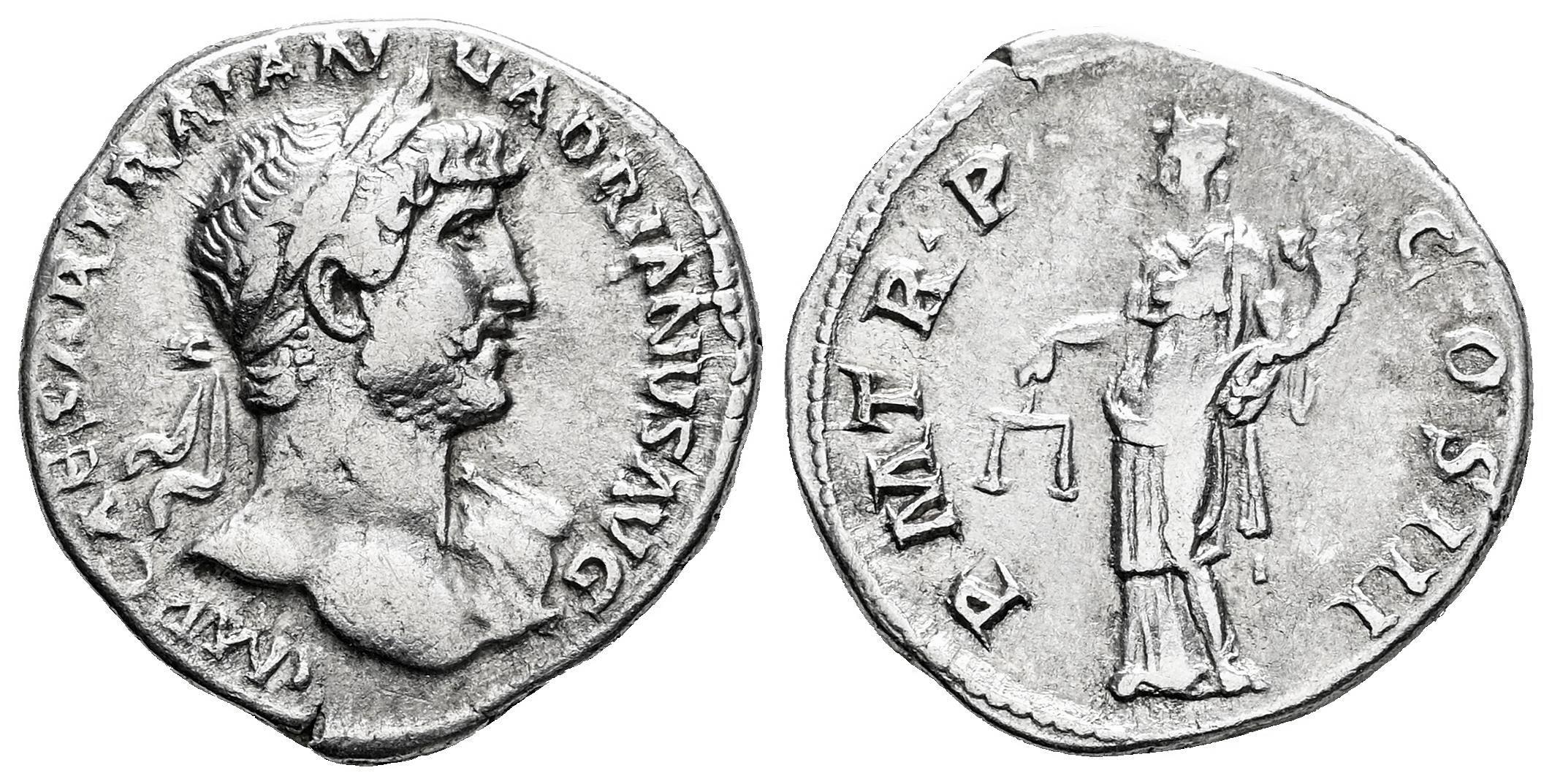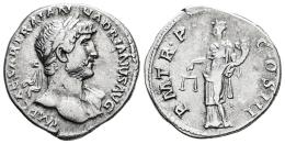 Hadrian. Denarius. 120-121 AD. Rome. (Ric-II.3 387). (Bmcre-154). (Rsc-1120b). Anv.: IMP CAESAR TRAIAN HADRIANVS AVG. Laureate head to right. Rev.: P M TR P COS III, Aequitas standing facing, head to left, holding scales and cornucopiae. Ag. 3,00 g. Cleaned. Almost VF. Est...50,00.