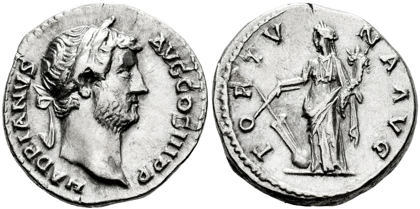 Hadrian. Denarius. 137-138 AD. Rome. (Ric-II 3.2335). (Bmcre-635). (Rsc-762 var.). Anv.: HADRIANVS AVG COS III P P, bare head to right, slight drapery on far shoulder. Rev.: FORTVNA AVG, Fortuna standing facing, head to left, holding rudder on globe and cornucopiae. Ag. 3,38 g. VF/Choice VF. Est...150,00.