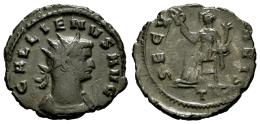 Gallienus. Antoninianus. 263-264 AD. Rome. (Ric-278). (Rsc-953). Anv.: GALLIENVS AVG. Radiate head of Gallienus to right. Rev.: SECVRIT ORBIS / T. Securitas seated left, holding scepter in her right hand and leaning her head on her left. Bi. 3,41 g. Scarce. Choice VF. Est...45,00.