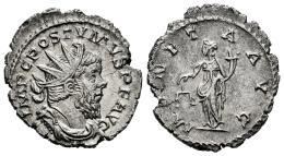 Postumus. Antoninianus. 263 AD. Trier. (Ric-V 2 75 (Lugdunum) / 315 (Colonia Agrippinensis)). (Rsc-199a). Anv.: IMP C POSTVMVS P F AVG, radiate, draped and cuirassed bust to right. Rev.: MONETA AVG, Moneta standing to left, holding scales and cornucopiae. Bi. 3,44 g. Ex H.D. Rauch (13/09/2010), lot 1326. Almost XF. Est...60,00.