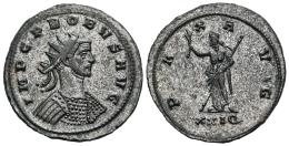 Probus. Antoninianus. 280 AD. Siscia. (Ric-706). Anv.: IMP C PROBVS P F AVG, Radiate and cuirassed bust to right. Rev.: PAX AVG, Pax standing facing, head to left, holding olive branch and sceptre; XXIQ in exergue. Bi. 4,12 g. Some silvering remaining. AU. Est...90,00.