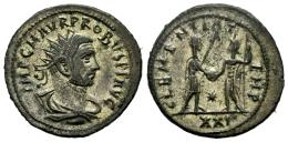 Probus. Antoninianus. 280 AD. Tripoli. (Ric-V 2.927). Anv.: IMP C M AVR PROBVS P F AVG. Radiate, draped and cuirassed bust to right. Rev.: CLEMENTIA TEMP. Emperor standing to right, holding eagle-tipped sceptre and receiving globe from Jupiter standing to left, holding sceptre; star between, XXI in exergue. Bi. 4,21 g. Almost XF/Choice VF. Est...30,00.
