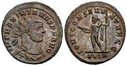 Maximianus Herculius. Antoninianus. 285-286 AD. Rome. (Ric-V 2 206). (C-355). Anv.: IMP MAXIMIANVS P F AVG, radiate, draped and cuirassed bust to right . Rev.: IOVI CONSERVAT AVGG, Jupiter standing facing, head to left, holding thunderbolt and sceptre; XXIA in exergue. Bi. 3,82 g. Ex Tauler&Fau 24 (19/02/2019), lot 2586. Almost XF. Est...60,00.