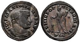 Galerius. Follis. 305-307 AD. Lugdunum. (Ric-VI 186b). Anv.: IMP MAXIMIANVS AVG, laureate and cuirassed bust to right. Rev.: GENIO POPVLI ROMANI, Genius, wearing modius on head, standing to left, holding patera over altar and cornucopiae; star in right field, PLC in exergue. Bi. 9,75 g. XF. Est...80,00.