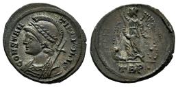 Constantinus I. Commemorative Series. Follis. 330-331 AD. Trier. (Ric-VII 523). (C-21). Anv.: CONSTANTINOPOLIS, laureate, helmeted and mantled bust of Constantinopolis to left, sceptre over shoulder. Rev.: Victory standing to left, foot on prow, holding spear and resting hand on shield set on ground; TRP· in exergue. Ae. 1,97 g. Ex H.D. Rauch 86 (12/05/2010), lot 1220. XF/Choice VF. Est...50,00.