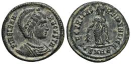 Helena. Follis. 325-326 AD. Heraclea. (Ric-VII 79). Anv.: FL HELENA AVGVSTA, pearl-diademed and draped bust right. Rev.: SECVRITAS REIPVBLICE, Securitas standing left, lowering branch, raising robe with right hand; •SMHЄ in exergue. Ae. 3,10 g. Choice VF/VF. Est...50,00.