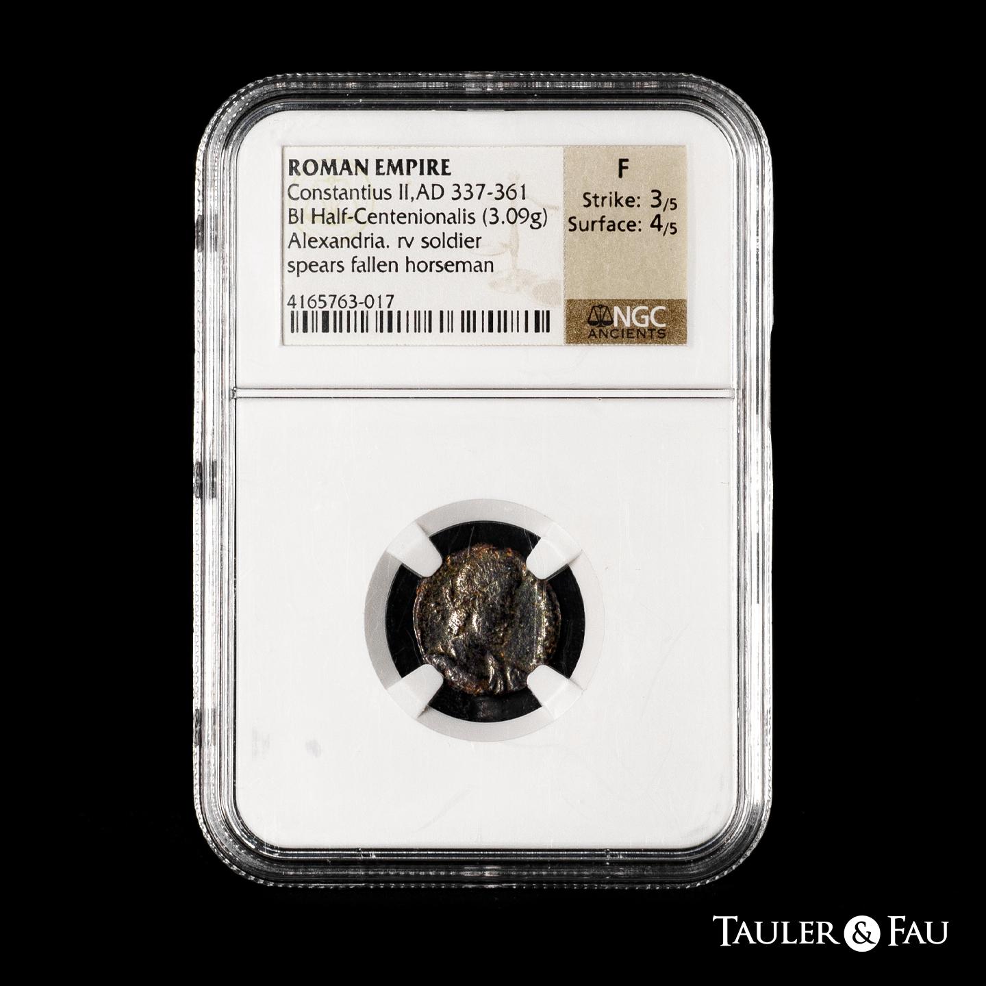 Constantinus II. 1/2 centenional. 337-361 D.c. Alexandria. Ae. Slabbed by NGC as F, strike 4/5, surface 2/5. Est...30,00.
