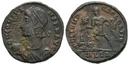 Constans. Centenionalis. 348-350 AD. Alexandria. 1st officina. (Ric-VIII 56). Anv.: DN CONSTA-NS PF AVG. Pearl-diademed, draped and cuirassed bust of Constans left, holding globe with right hand. Rev.: FEL TEMP-REPARATIO, Constans standing facing, head left, holding vexillum in right hand, left resting on shield set on ground, two captives seated sitting facing each other to left; ALEA in exergue. Ae. 5,40 g. VF. Est...35,00.