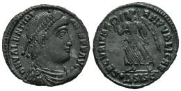 Valentinian I. Centenionalis. 364-367 AD. Siscia. (Ric-VIII 15a). Anv.: D N VALENTINIANVS P F AVG, Diademed, draped and cuirassed bust right. Rev.: SECVRITAS REI PVBLICAE, Victory advancing left with palm branch and wreath; ·ΔSISC in exergue. Ae. 2,26 g. Choice VF. Est...40,00.