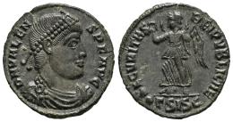 Valens. Centenionalis. 364-367 AD. Siscia. (Ric-IX 7b). Anv.: D N VALENS P F AVG, pearl-diademed, draped and cuirassed bust to right. Rev.: SECVRITAS REI PVBLICAE, Victory advancing to left, holding wreath and palm; •ΓSISC in exergue. Ae. 2,22 g. Scarce. XF. Est...50,00.