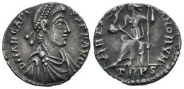 Arcadius. Siliqua. 392-395 AD. Trier. (Ric-106c). (Rsc-27e). Anv.: D N ARCADIVS P F AVG, pearl-diademed, draped and cuirassed bust right. Rev.: VIRTVS ROMANORVM, Roma seated left on cuirass, holding Victory on globe and reversed spear; TRPS in exergue. Ag. 1,89 g. Slight patina. Scarce. Choice VF/VF. Est...200,00.