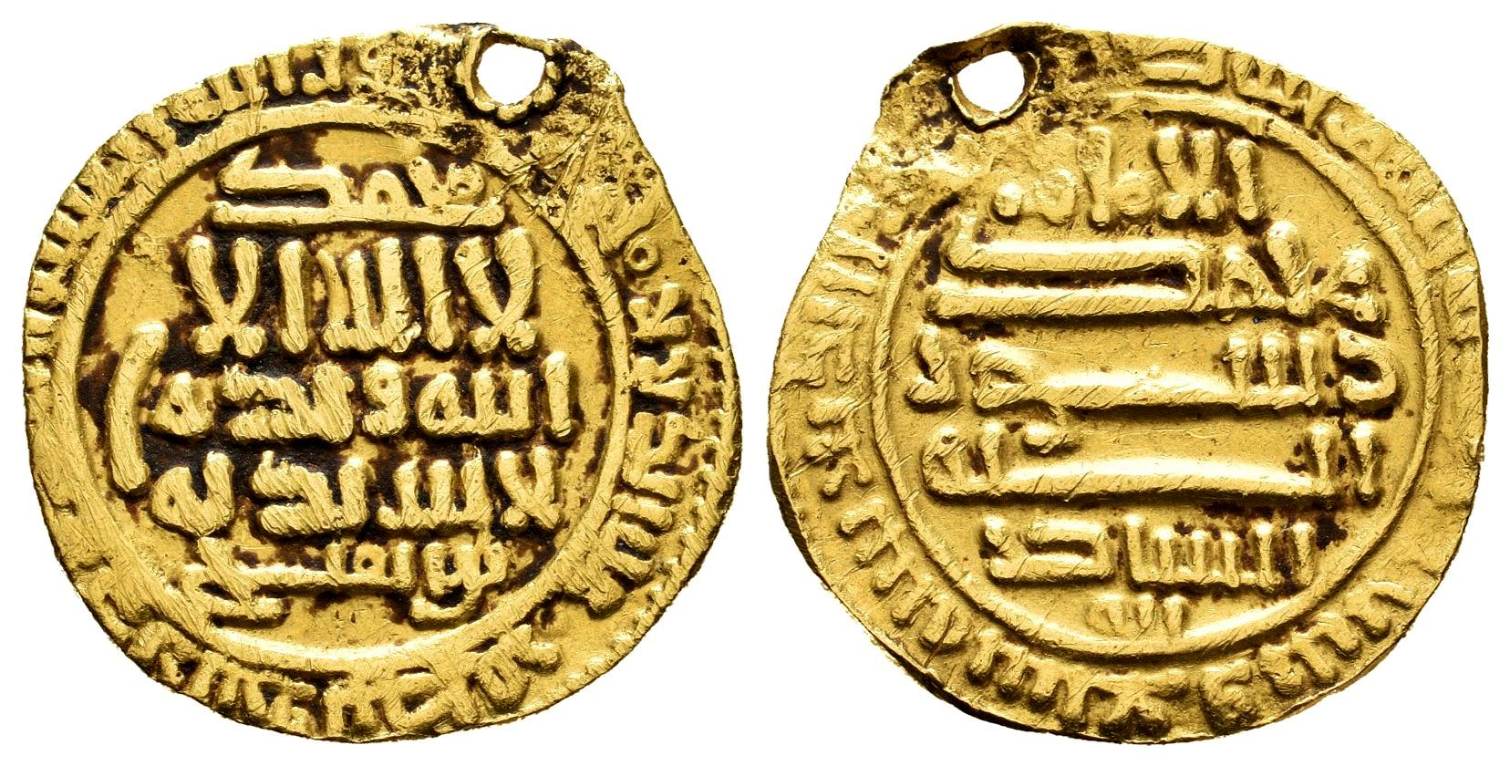 Midrarid dynasty. Al-Shakir Muhammad ibn al-Fath. Dinar. 337 AH. Without mint mark. (Sijilmasa). (Album-453). (Mitch-357). (Lavoix-929). Au. 4,17 g. Puncture. Ex Áureo & Calicó 390 (31/05/2022), lot 2159; Ex Áureo & Calicó 318, MB Collection (17/10/2018),lot 634. Choice VF. Est...400,00.