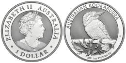 Australia. Elizabeth II (1952-2022). 1 dollar. 2021. Perth. P. (Km-4127). Ag. 31,43 g. Kookaburra. PROOF. Est...40,00.