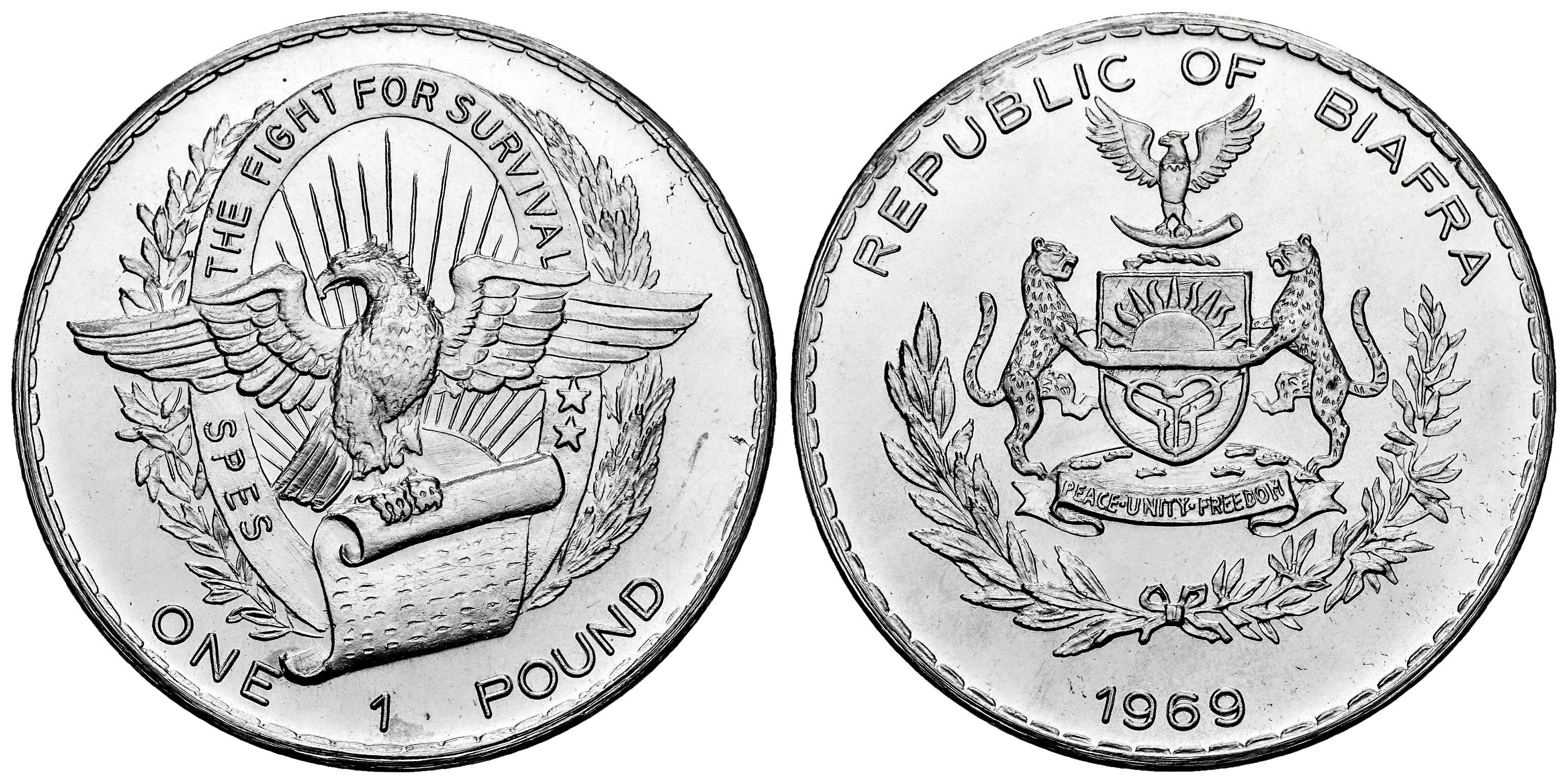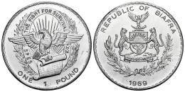 Biafra. 1 pound. 1969. (Km-6). Ag. 25,19 g. Minimal hairlines. Plenty of original luster. Scarce. Mint state. Est...150,00.
