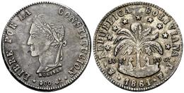 Bolivia. 8 soles. 1861. Potosi. FJ. (Km-138.6). Ag. 20,00 g. Delicate patina. Choice VF/Almost XF. Est...70,00.