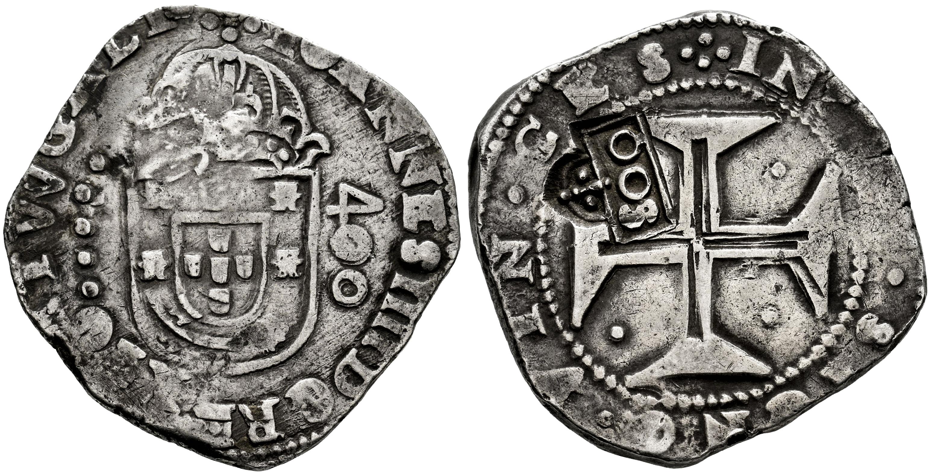 Brazil. D. Afonso VI (1656-1667). (Km-37). (Gomes-44.01). Ag. ND (1663). Counterstamp of 500 Reis with crowned “S00”, issued by decree of 22 March 1663 and strongly applied to the reverse of a 400 Reis (Cruzado) struck at the Lisbon mint under João IV. Ligth tone. Very rare. Choice VF. Est...600,00.