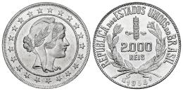 Brazil. 2000 Reis. 1934. (Km-526). Ag. 8,02 g. Plenty of original luster. Mint state. Est...25,00.