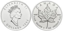 Canada. Elizabeth II. 5 dollars. 1996. (Km-187). Ag. 31,43 g. Minimal hairlines. Plenty of original luster. Mint state. Est...50,00.