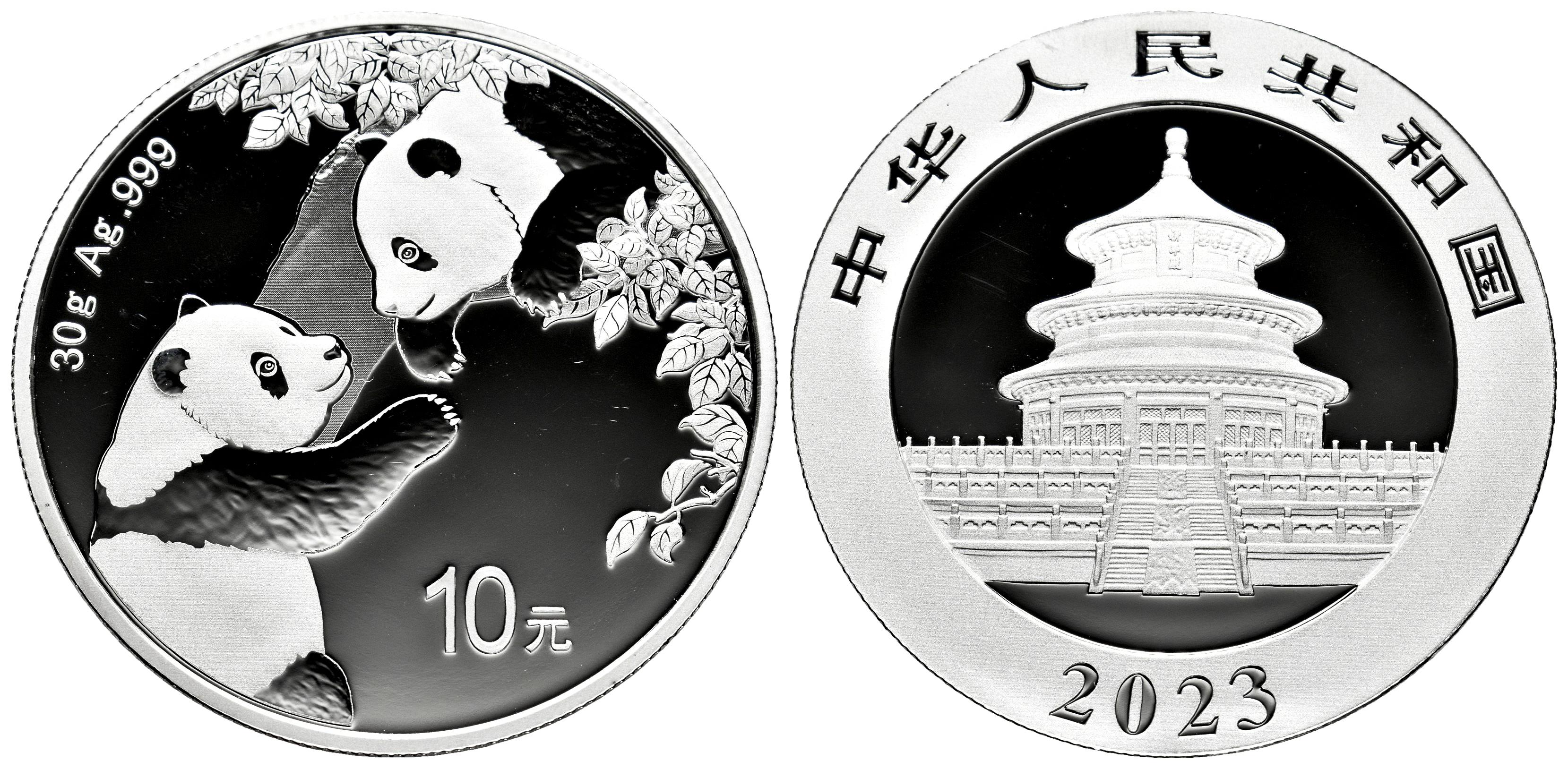 China. 10 yuan. 2023. (Km-2750). Ag. 31,04 g. Panda series. Brilliant uncirculated. Mint state. Est...50,00.