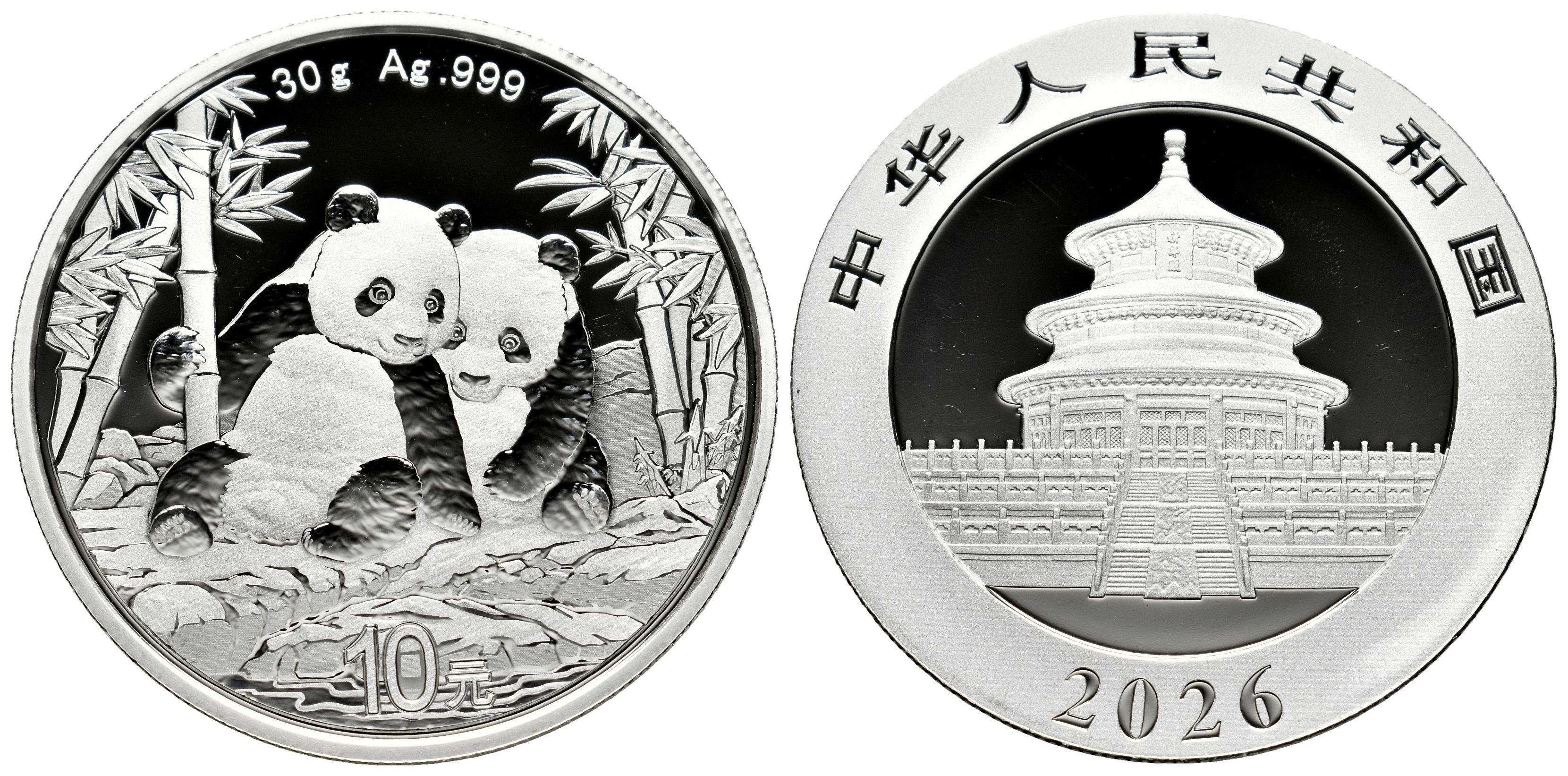 China. 10 yuan. 2026. Ag. 30,24 g. Panda Series. Brilliant uncirculated. Mint state. Est...60,00.