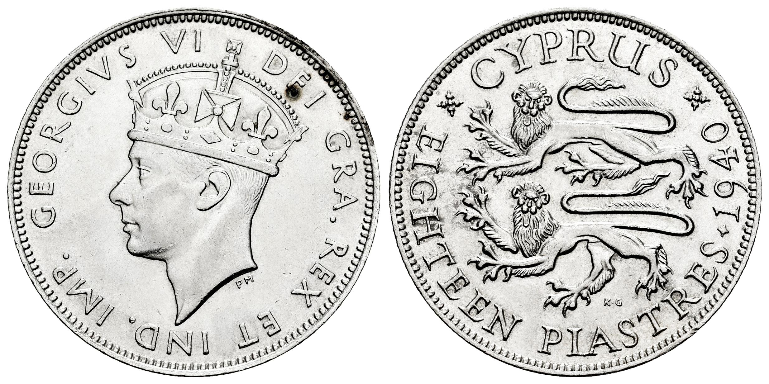 Cyprus. George VI. 18 piastre. 1940. (Km-25). Ag. 11,35 g. Original luster. XF/AU. Est...25,00.